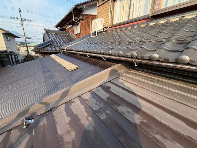 屋根を確認させていただいたところ、アライグマの姿はありませんでしたがいたるところに痕跡がありました。